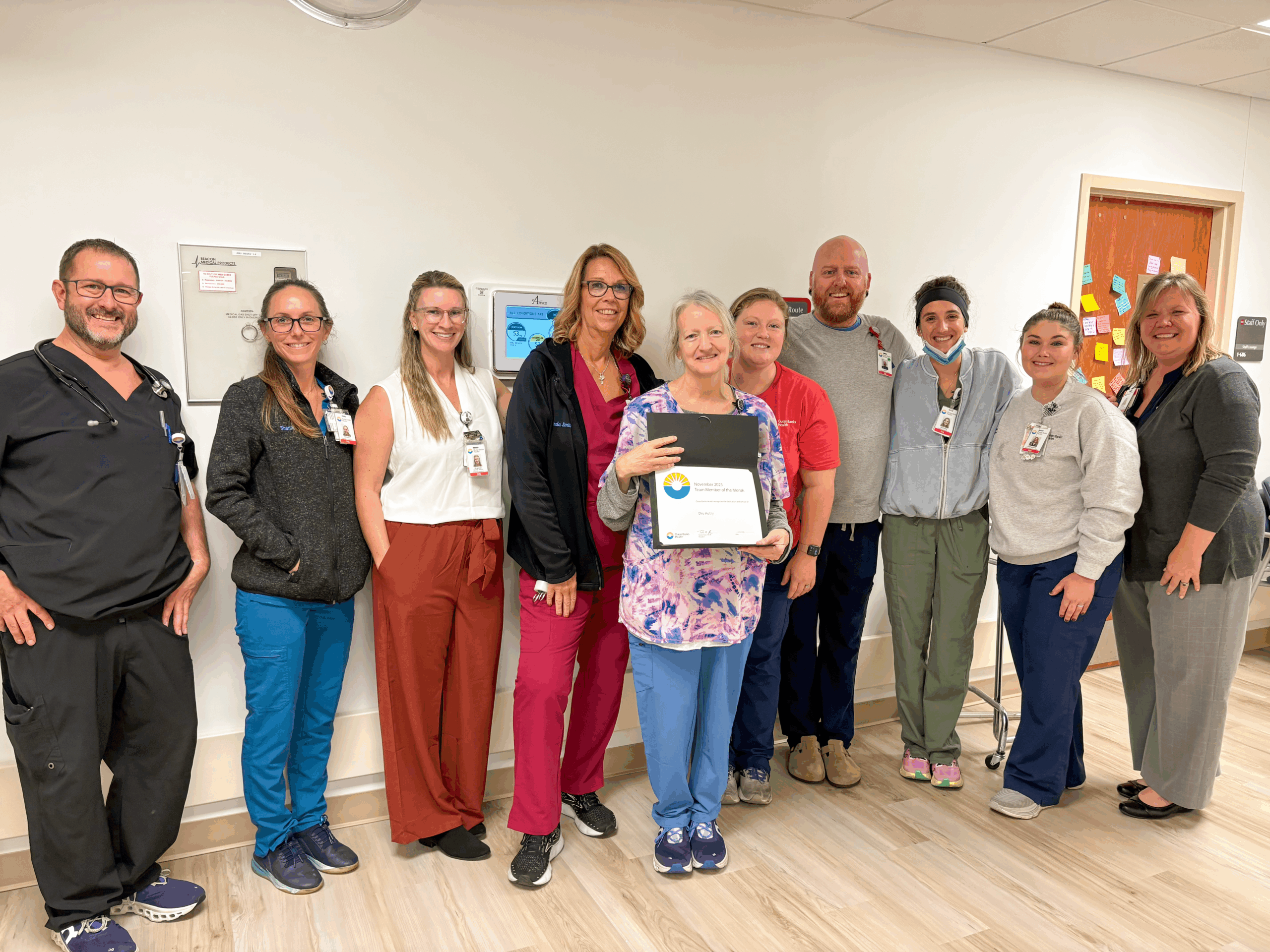 “Dru truly exemplifies the values of Outer Banks Health,” her team said in a group statement. “She is a joy to work with and an asset to our team. The ED night shift is so lucky to have her.”