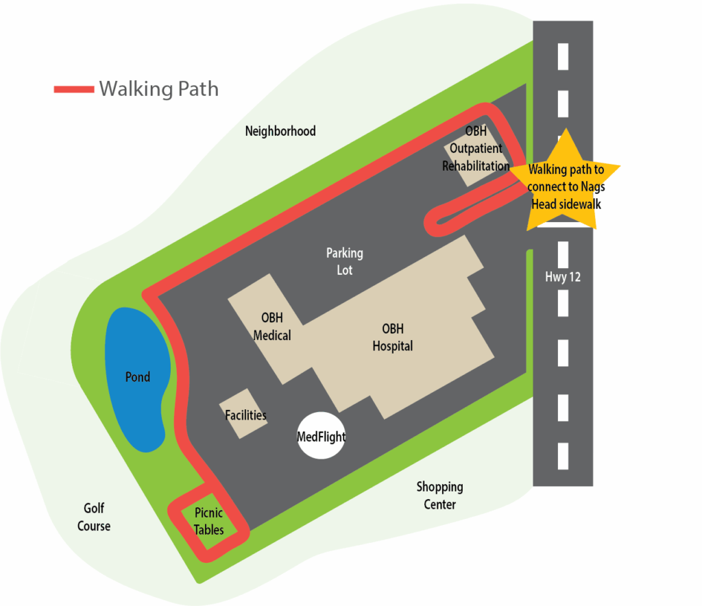 Outer Banks Health’s commitment to well-being extends far beyond its walls. That’s why we’re launching our next We Give campaign greatest need initiative toward building a walking path around our hospital campus for both our team and community. This path is a representation of OBH’s commitment to igniting a well-being movement on the Outer Banks through the ThriveOBX initiative, and gives back to our team members as an appreciation and recognition of their service to our community. In addition, this year Outer Banks Health added well-being to its core values (Integrity, Compassion, Education, Accountability, Safety, Teamwork, + Well-being) to underscore the dedication to its care for its team members, shining into our community.